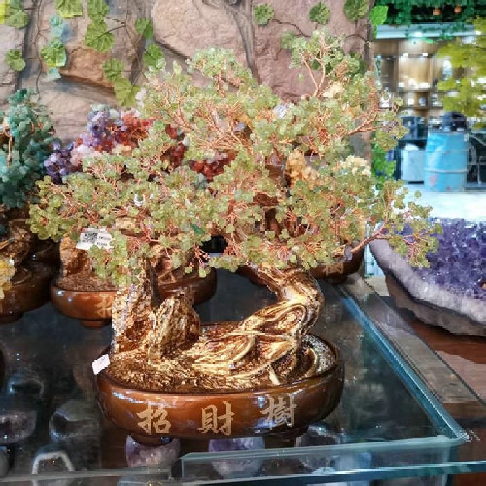 金招财树(椭圆盆)-橄榄石 规格高35宽35cm 重量 // 编码 94000394