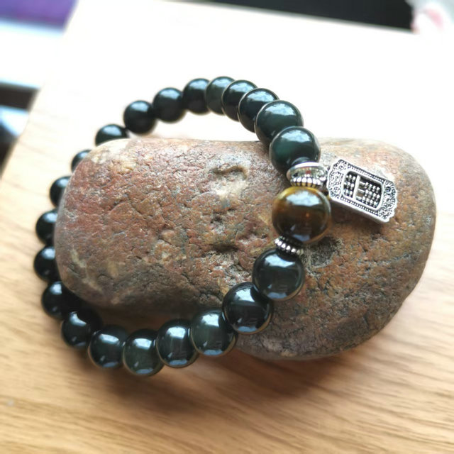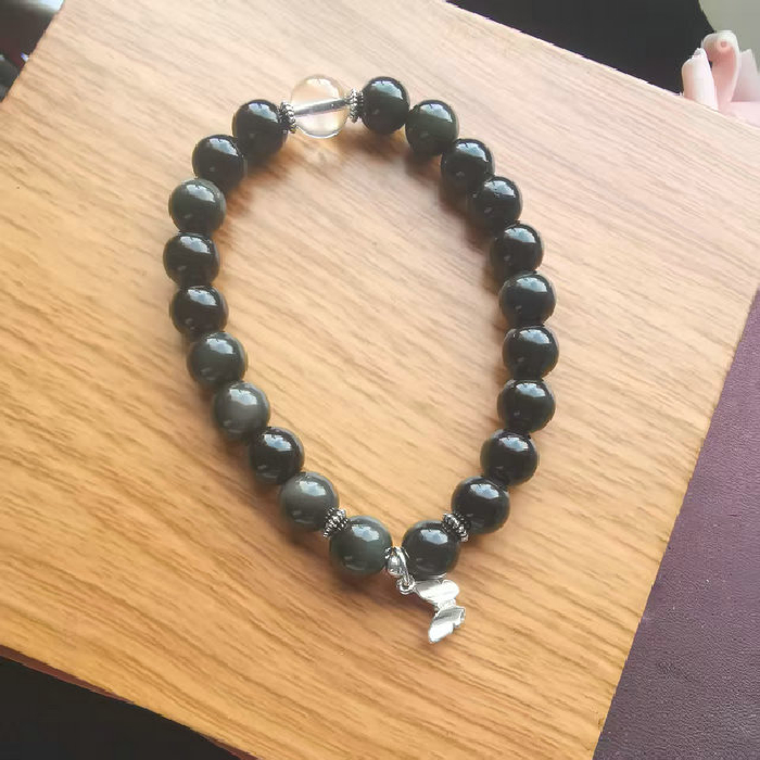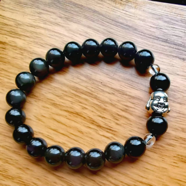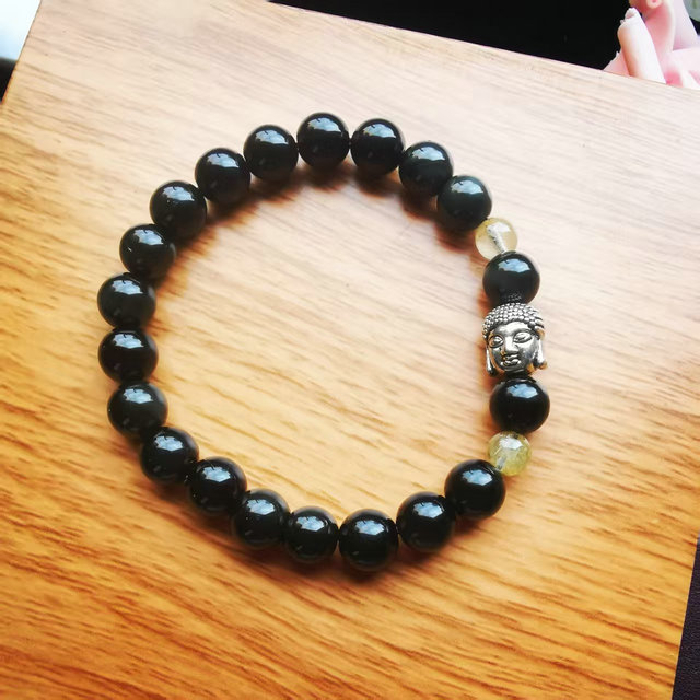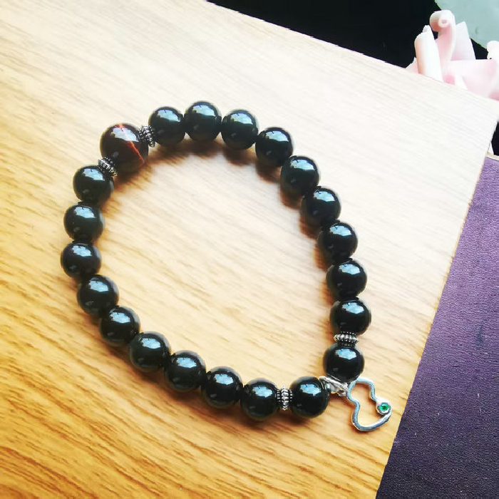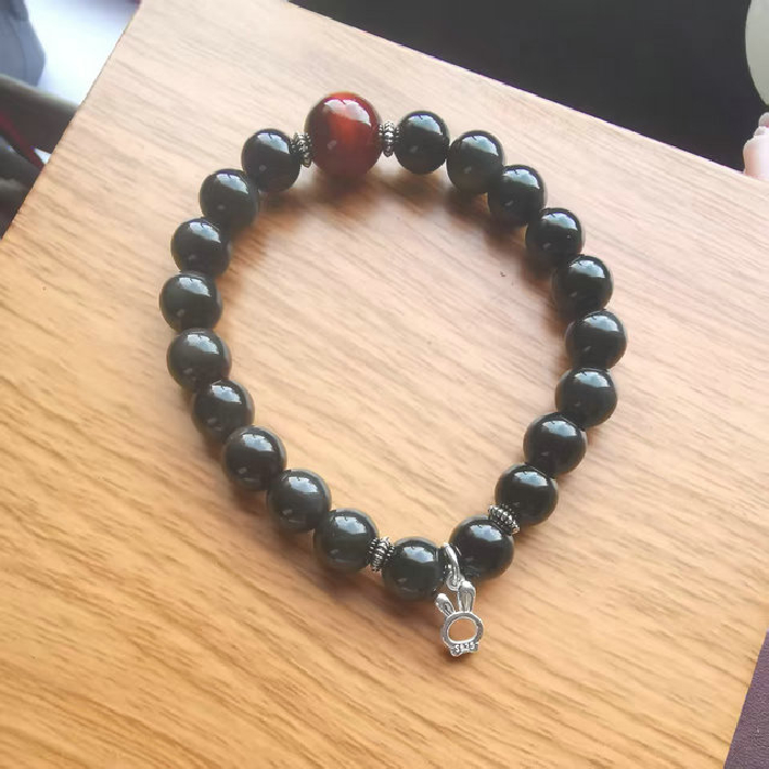黑曜石+925银配饰圆形手链 规格8mm 重量 /克 编码 16800153(多种搭配看图选款)