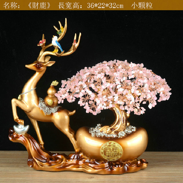 财鹿发财树-粉晶 规格36*22*32cm 重量 // 编码 94000581