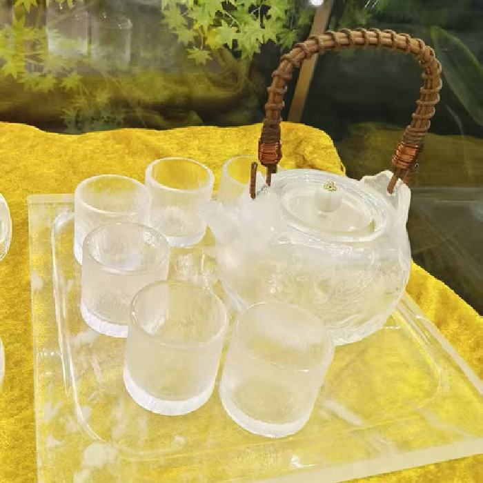 原石水晶事事如意仿古茶壶+6直冰烧杯(礼盒套装) 规格高9宽13口径10宽6高6.5cm 重量 // 编码 35103289