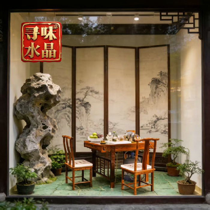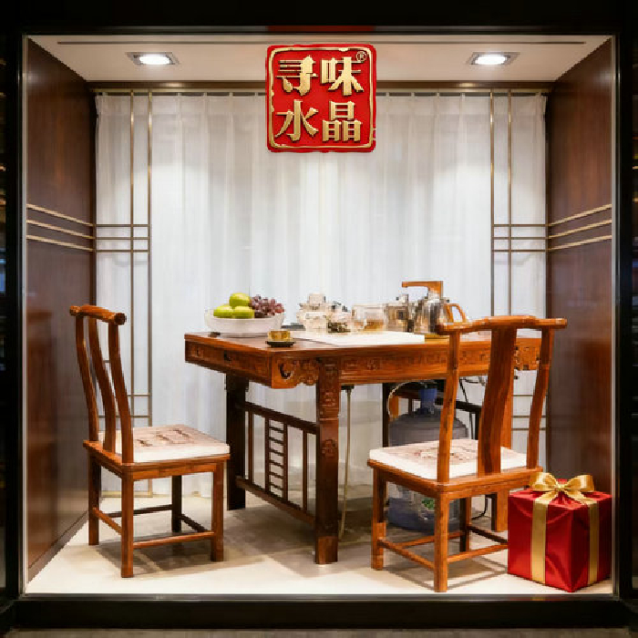 原石水晶去痔原石板配楠榆木茶台椅(小)(自用) 规格1台3小椅/ 重量 // 编码 35000367