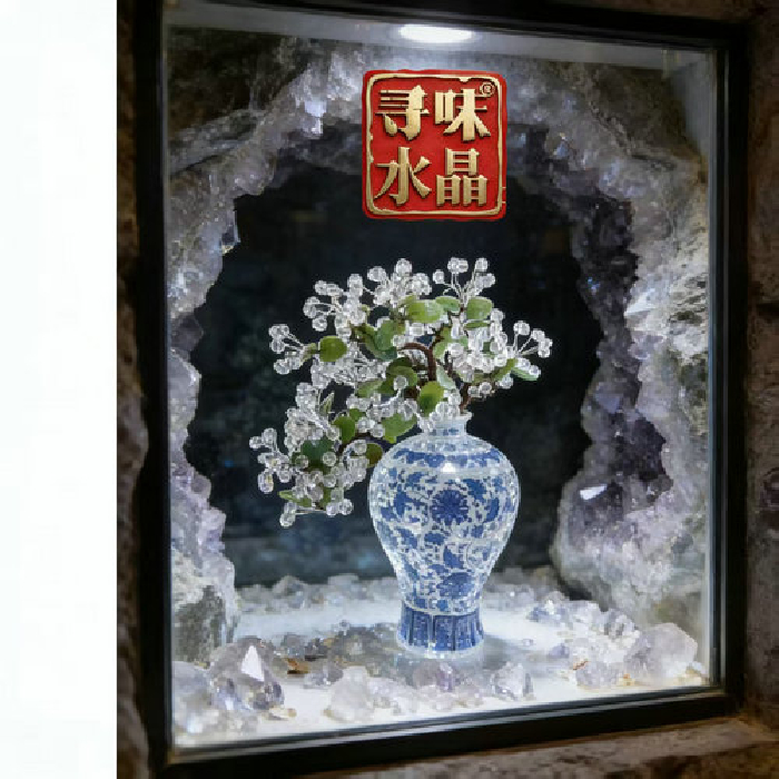 白晶发财树(青花瓷高瓶) 规格高46*宽46cm 重量 // 编码 94000345