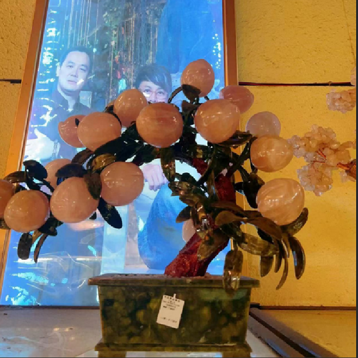 粉晶18桃招财树摆件(方盆) 规格43cm 重量 // 编码 94000029