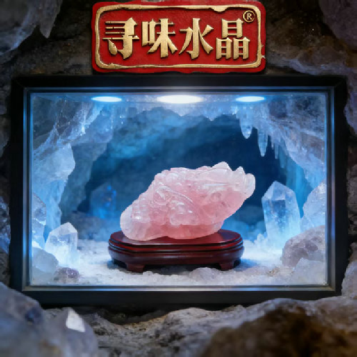 粉晶金蟾摆件 规格11*8*连木座高12cm 重量 686克 编码 92900440