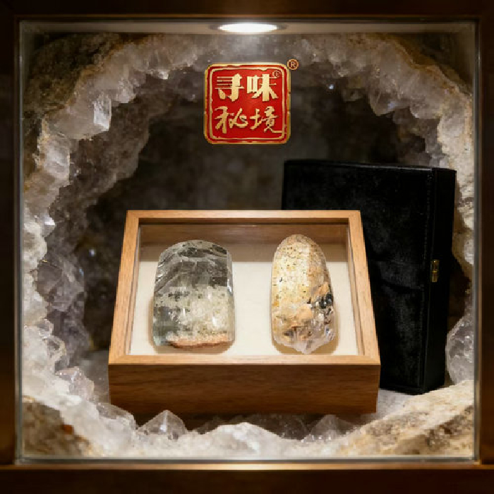 花幽灵原矿石摆件(2件套、带盒)(水晶大王收藏) 规格38*24/ 重量 57克 编码 19002845