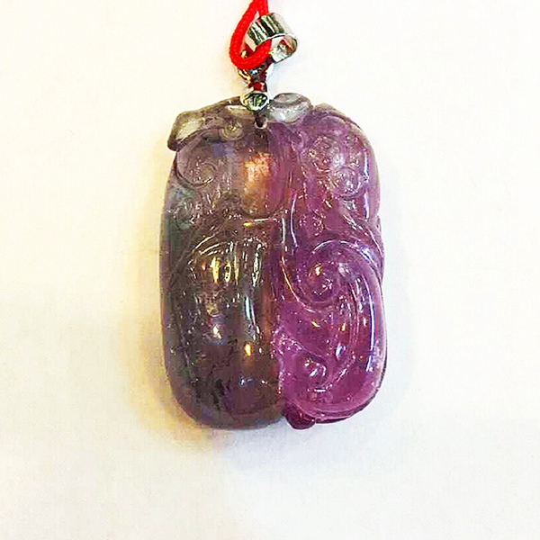 双色碧玺雕刻如意金蝠挂坠 规格29*19*11mm 重量 11.52克 编码 92201246