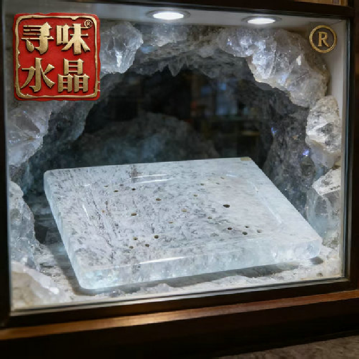 原石水晶原石方形带孔茶盘 规格39.6*36.6cm 重量 // 编码 35102468