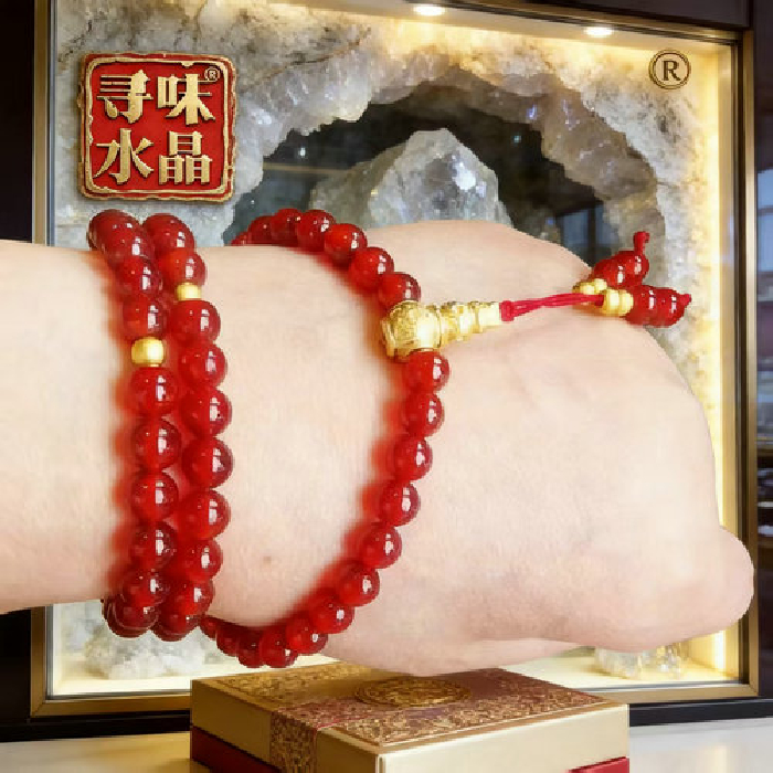 红玛瑙圆珠+配饰或配珠手串(3圈) 规格6mm 重量 /克 编码 16800206(多种搭配看图选款)
