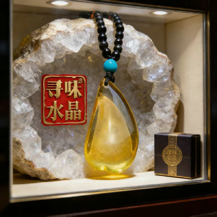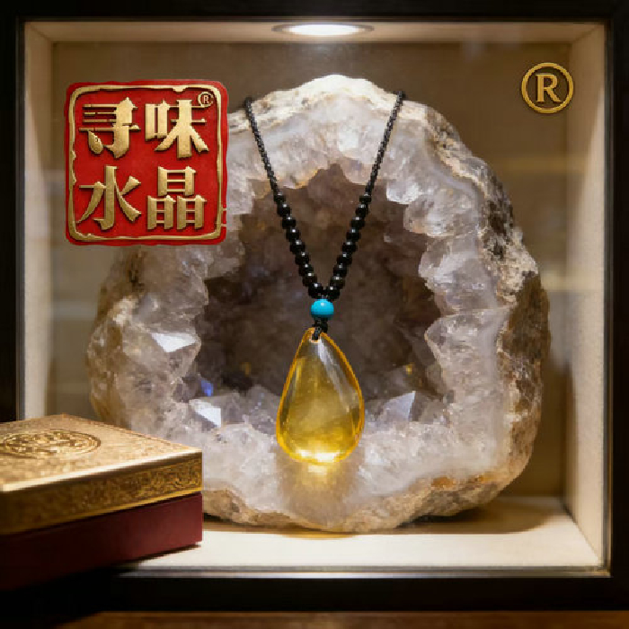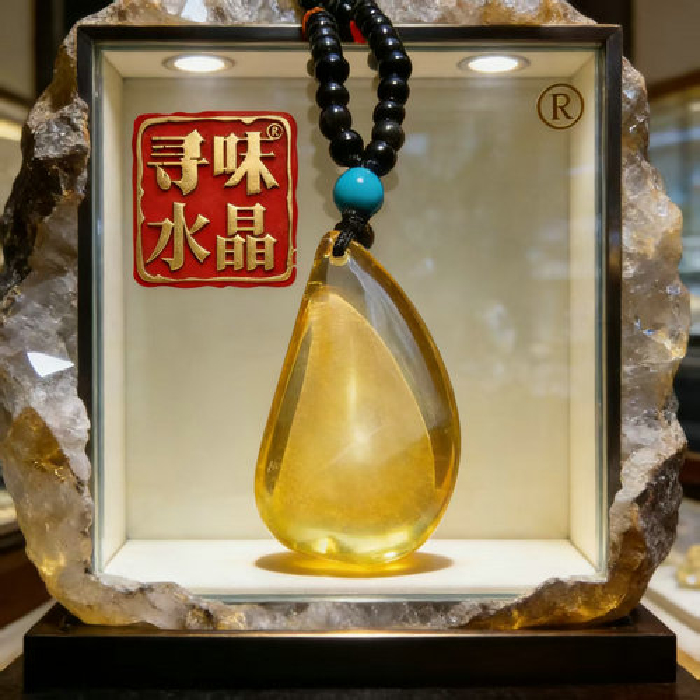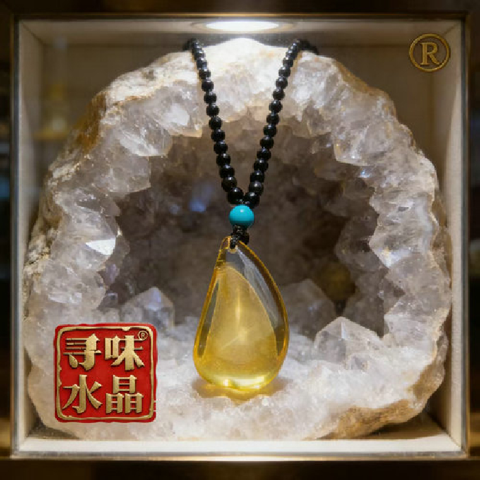 黄晶随形挂坠+黑曜石圆珠毛衣链 规格41*22*10/4mm 重量 28克 编码 82300286