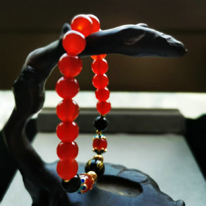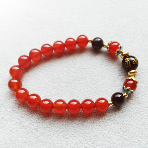 红玛瑙圆珠+配饰或配珠手链 规格8mm 重量 /克 编码 16800218(多种搭配看图选款)