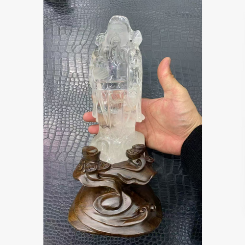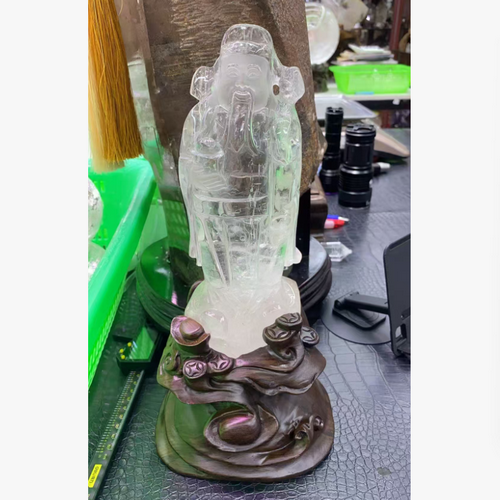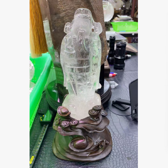 白晶财神摆件(檀木底座) 规格23*9cm 重量 1.6千克 编码 39077407