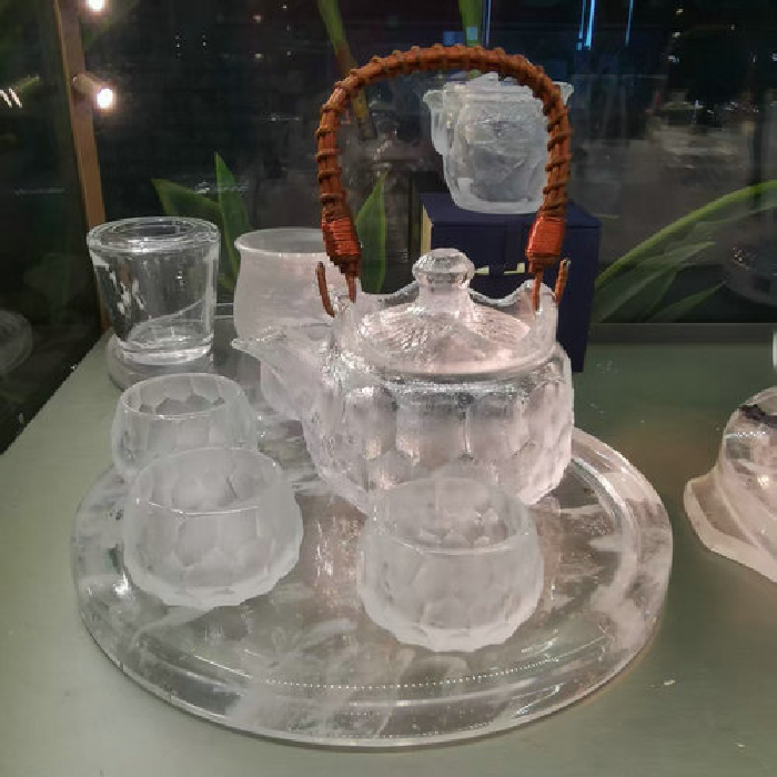 原石水晶仿古茶壶+4禅定冰烧杯(礼盒套装) 规格高9宽13口径10宽5高5cm 重量 // 编码 35103290