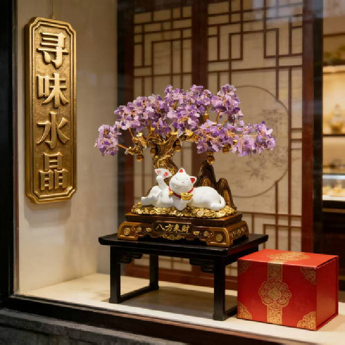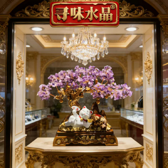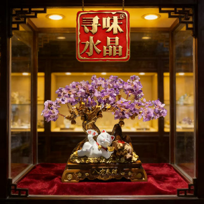 八方来财招财猫发财树-紫晶 规格高30宽38cm 重量 // 编码 94000531
