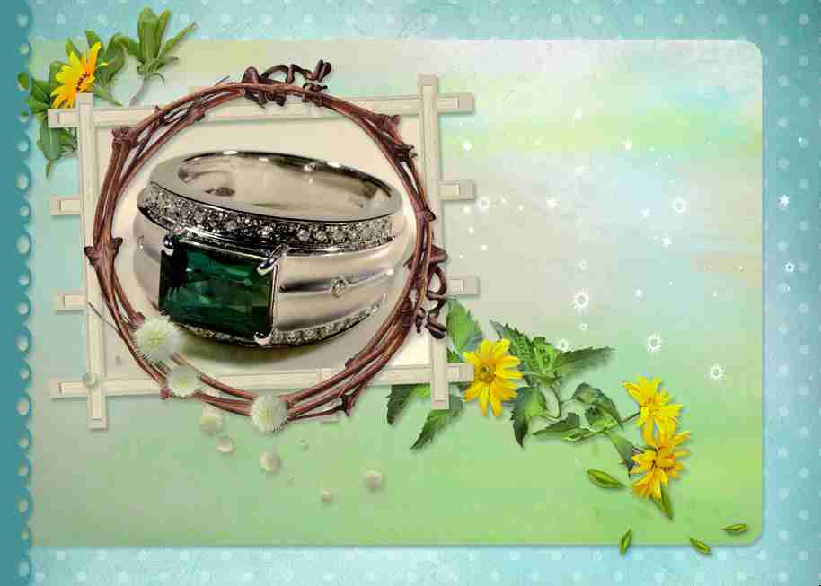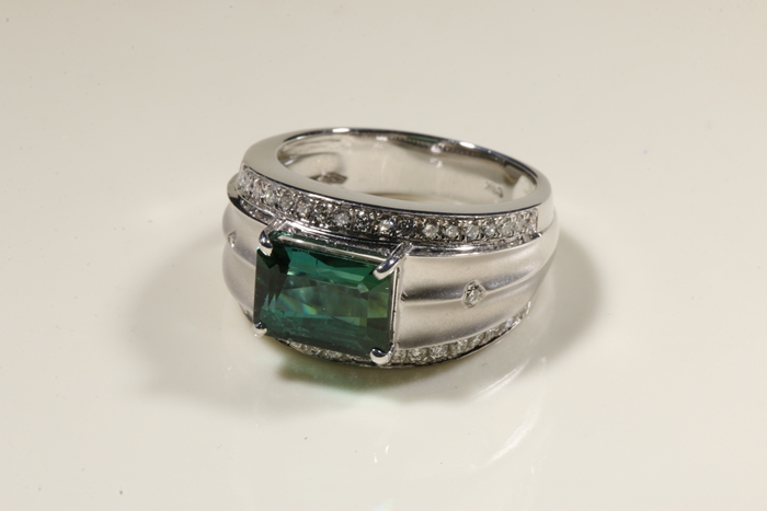 五彩碧玺K金镶嵌戒指(男款) 规格// 重量 // 编码 89001118