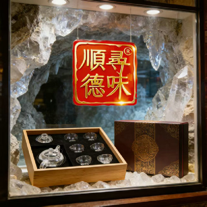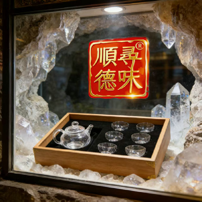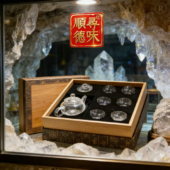 原石水晶光身壶+6薄杯(传统礼盒) 规格壶18*10*10杯5.5*3.5cm 重量 // 编码 35101079