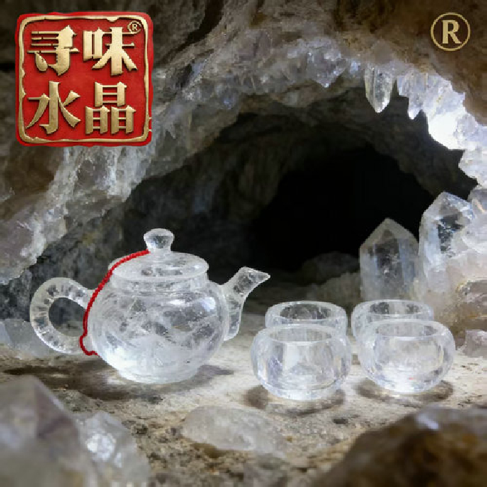 原石水晶光身茶壶(1国产矿壶+4巴西矿厚内直杯)礼盒#17 规格18*10*10cm 重量 // 编码 35103159