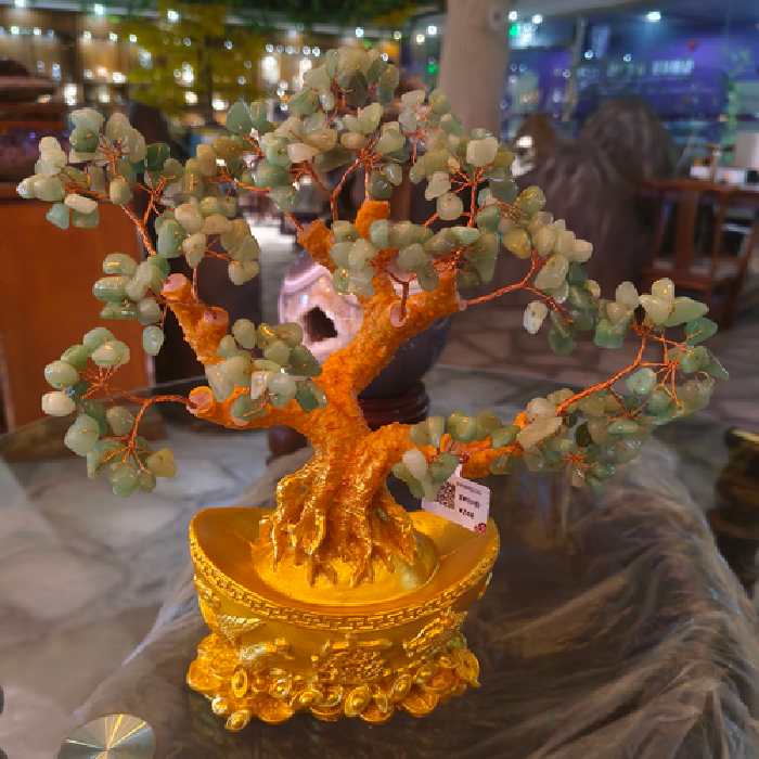 小龙凤招财树摆件-东陵玉 规格16*13*7cm 重量 // 编码 94000293