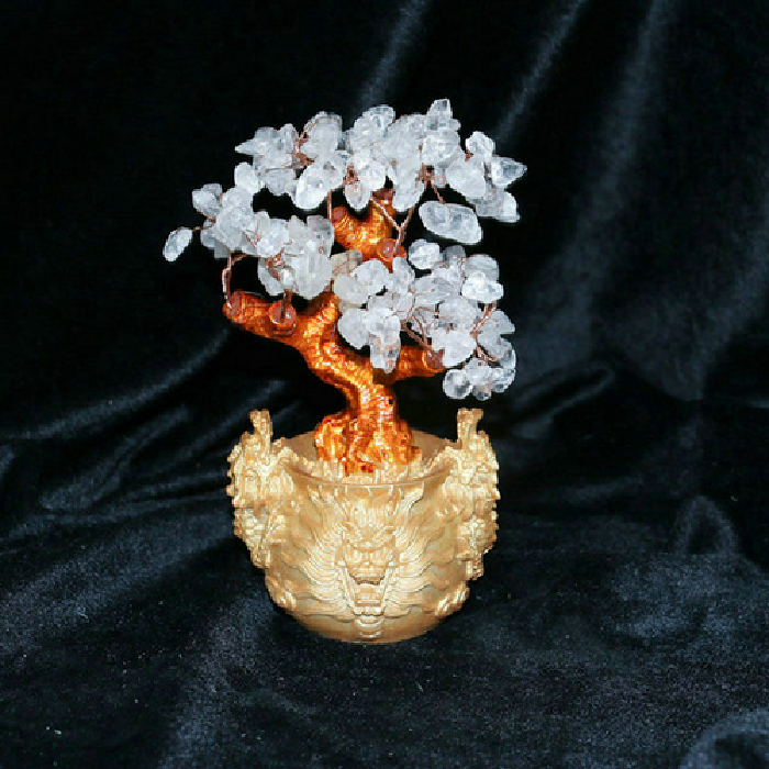 小龙头招财树摆件-白晶 规格18*14*8.5cm 重量 // 编码 94000299