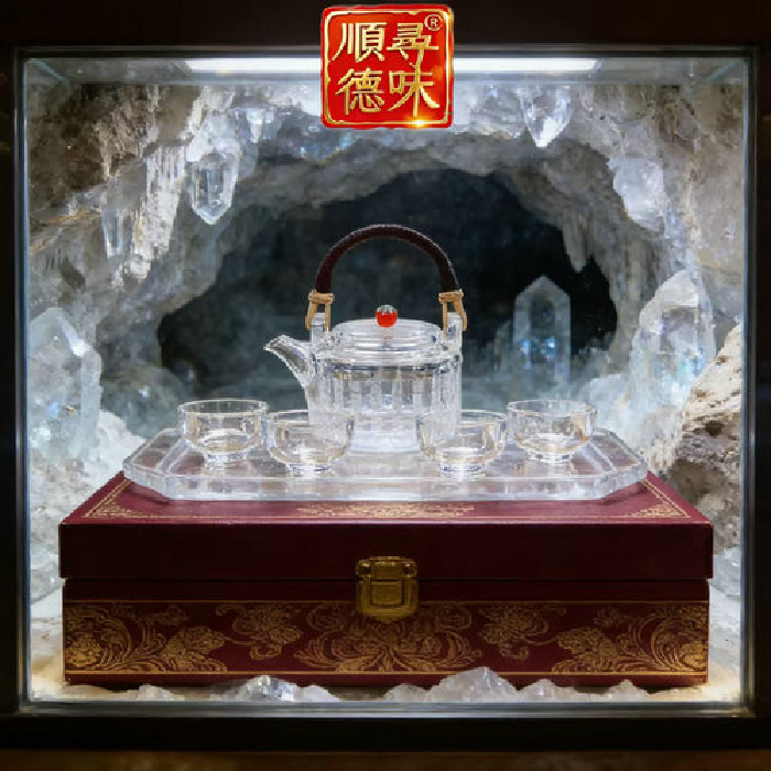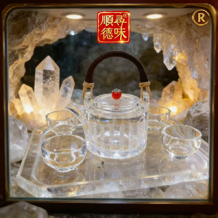 原石水晶事事如意百福仿古茶壶+4小茶杯(礼盒套装) 规格高9宽13口径10宽5高5cm 重量 // 编码 35103288