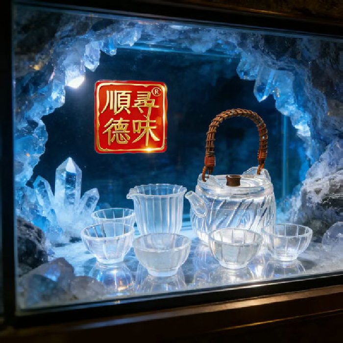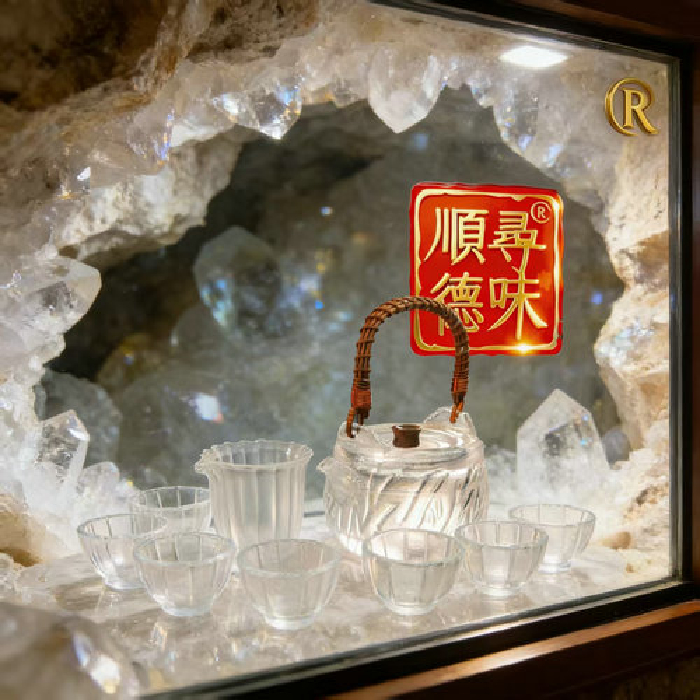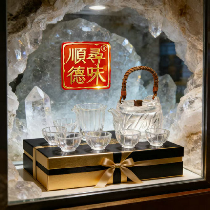 原石水晶仿古茶壶+6竖棱纹冰烧杯+1公道杯(礼盒套装) 规格/cm 重量 // 编码 35103292